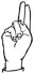 На ћирилици написано БЛАЖА ПУЧИЋ састоји се из 10 слова [?]. Исписано ћириличном једноручном азбуком за глувонеме: